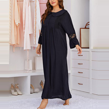 HH-77M da notte in morbida viscosa da donna taglie forti abito da notte a maniche lunghe fino alla caviglia con rifiniture in pizzo