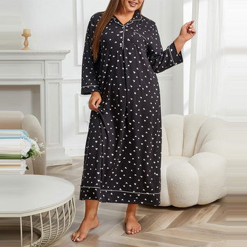 HH-146M all'ingrosso European American Plus da donna camicia da notte stampata traspirante elasticizzata comoda manica lunga 3XL semplice