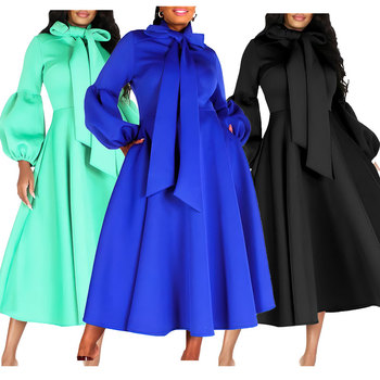Negozio indipendente di 427 d'arte per il commercio estero 2023 di moda donna nuova cravatta con maniche a lanterna con orlo grande vita impero taglie forti a trapezio