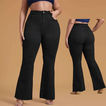ST-6102 all'ingrosso taglie forti traspiranti antivento poliestere/cotone Jeans svasati Casual da donna leggermente svasati