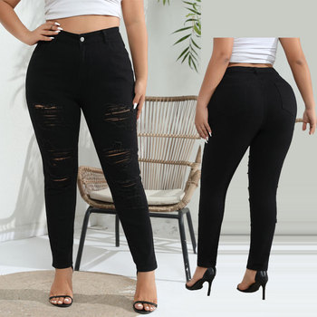 ST-2384 pantaloni in Denim a gamba dritta traspirante Cross-Border europei e americani di taglia Extra-Large per donne taglie forti