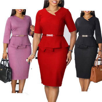 2025 Trendy v yaka kalem siluet Midi yarım kollu fırfır Wrap kalça ofis elbise kadınlar için resmi iş kemer ofis Lady