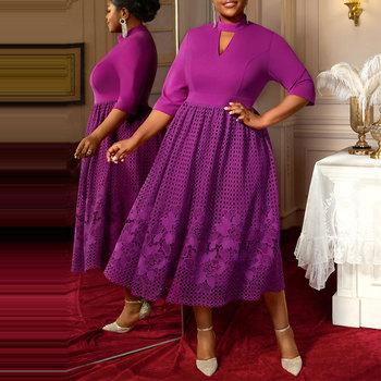 Yüksek kaliteli avrupa sıcak satış artı-boyutu A-Line dantel Patchwork imparatorluk bel yıkanabilir rahat zarif parti elbise